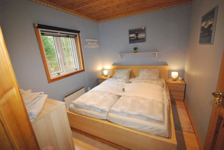 Das Schlafzimmer ist mit einem Doppelbett (180×200 cm) ausgestattet. Ebenso finden Sie eine Kommode mit 3 Ausziehschubladen und einen Hochschrank mit viel Stauraum. Auch ein Verdunklungsrollo sowie ein Mückenschutzrollo am Fenster sind vorhanden. Nachttisch/Beleuchtung auf jeder Bettseite, Radiowecker sowie ein Schmutzwäschebehälter. Der Boden ist mit Laminat ausgestattet.